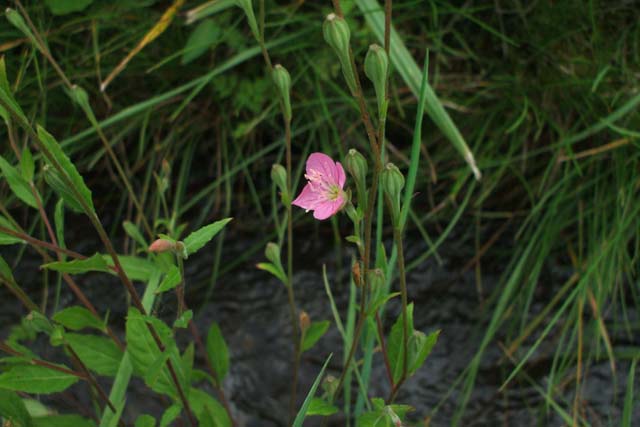 花期は、5〜9月頃で上部の葉脇に直径約1cmの淡紅色の花を夕方に開く。花弁は丸く、赤い筋が目立ち、ピンク色のきれいな4弁花が咲く。オシベは8個で葯は白色。 マツヨイグサの仲間で、夕方に咲き、昼過ぎまで咲いている。 真夏の暑さには弱く一時姿を消すが秋口から12月頃まで花が見られる。