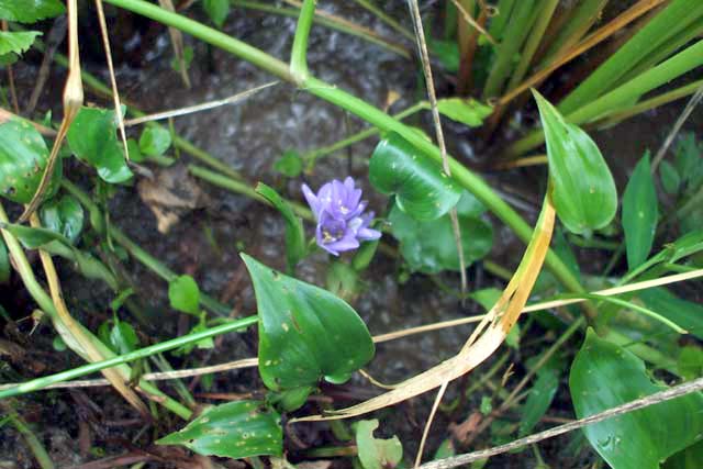 花は8月の終わり頃から咲き始め、10月頃まで。同じ科のホテイアオイに似ているが、コナギは葉柄が太くならない。