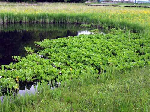 北半球の亜寒帯、寒帯に広く分布し、北海道、本州、九州の山地の沼や沢などの湿地にはえる多年生の水草。