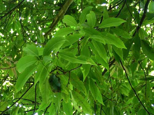 常緑高木。 樹高15〜20m。 雌雄同株。 樹皮は灰黒色。 葉は単葉で互生。